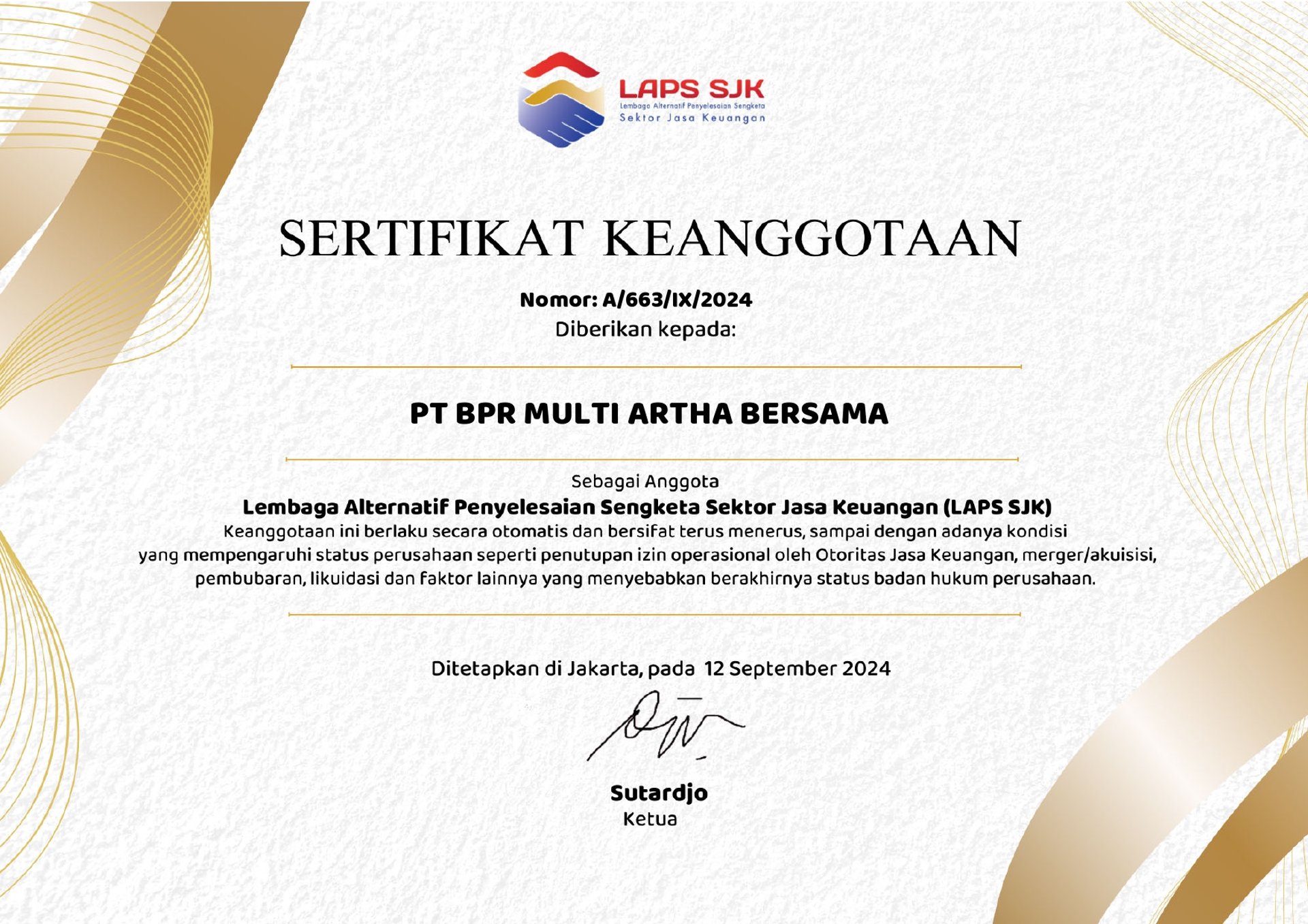 PT BPR Multi Artha Bersama merupakan peserta penjaminan Lembaga Penjamin Simpanan.